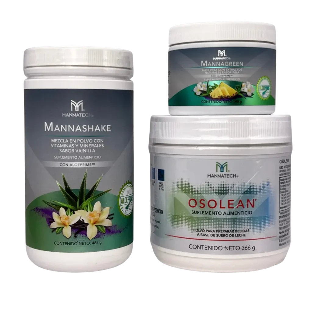 Este poderoso trío: OsoLean®, MannaShake® y MannaGreen®, trabaja en conjunto para ayudarte a perder grasa, mantener masa muscular y desintoxicar tu cuerpo, mientras te brinda energía y saciedad durante el día.
